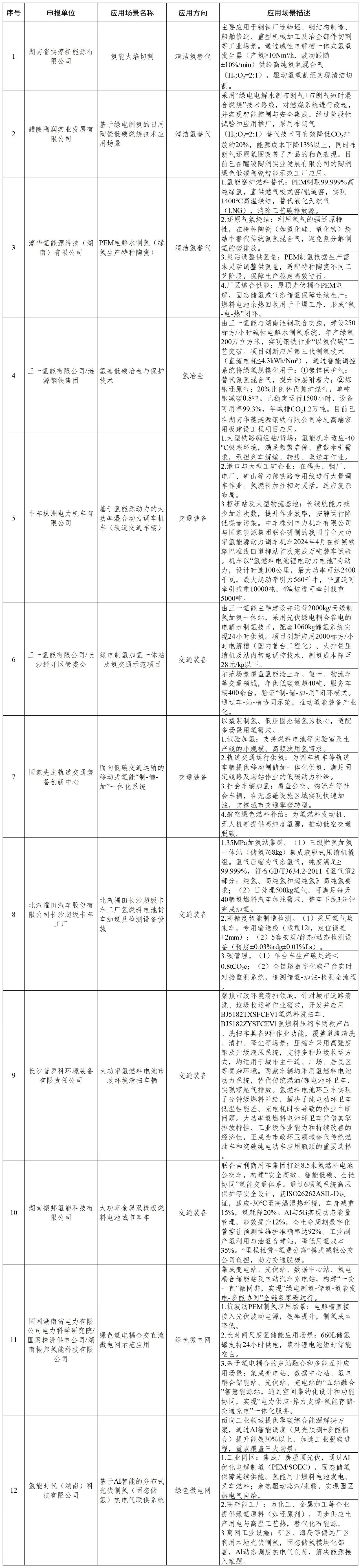 关于公布湖南省工业低碳氢应用场景的通知