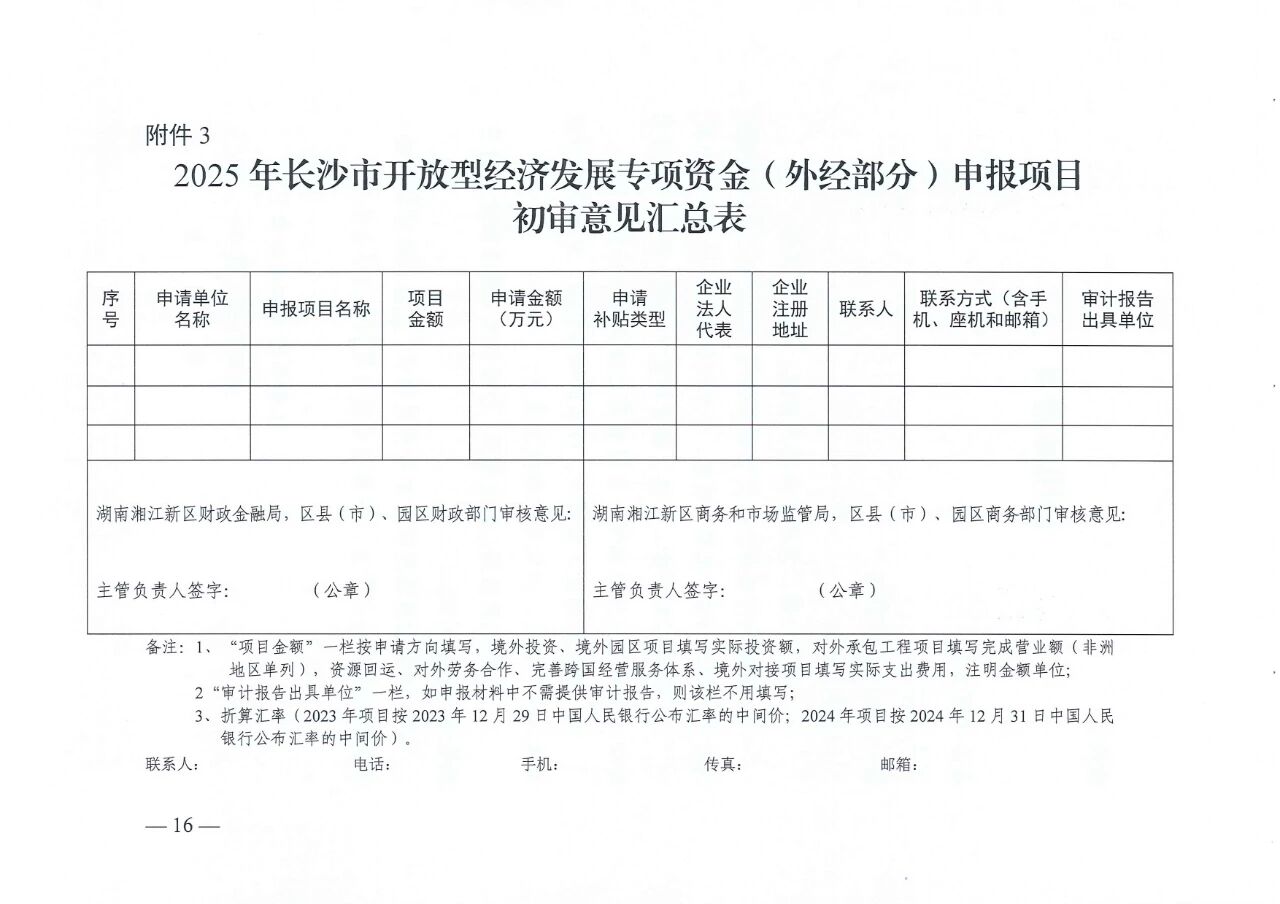 长沙市商务局 长沙市财政局关于做好2025年长沙市开放型经济发展专项资金(外经部分)申报工作的通知