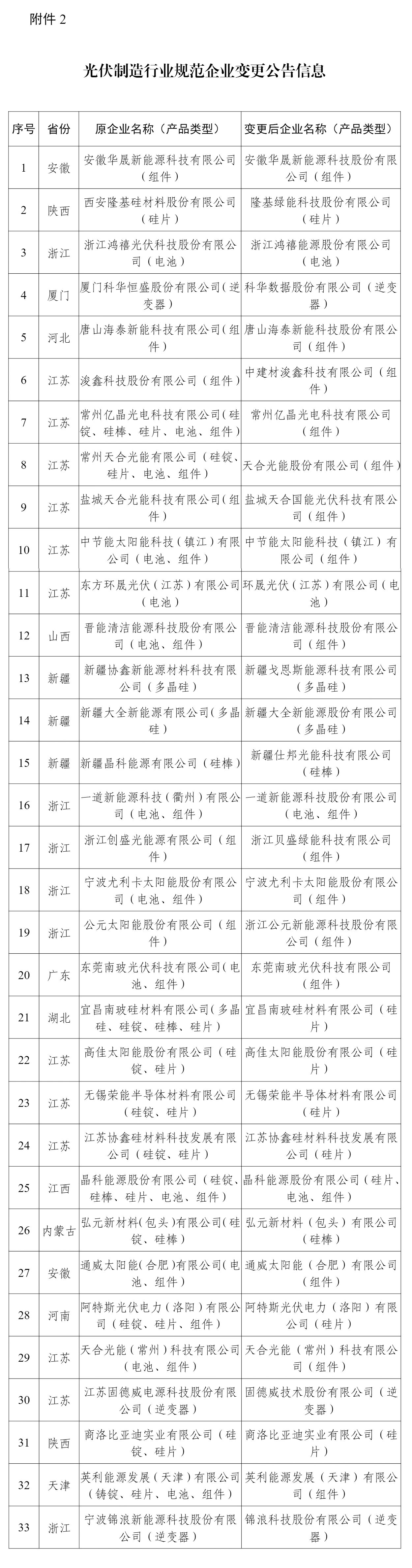 2.光伏制造行业规范企业变更公告信息